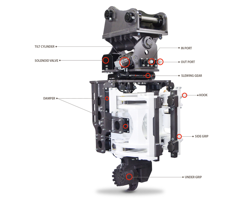 굴삭기의 유압라인을 활용하여 작동되므로 별도의 동력원이 필요하지않음
