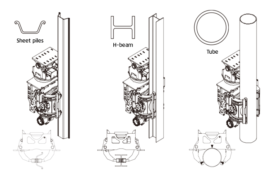 Sheet pile , H-beam 또는 Tube 작업에 적합