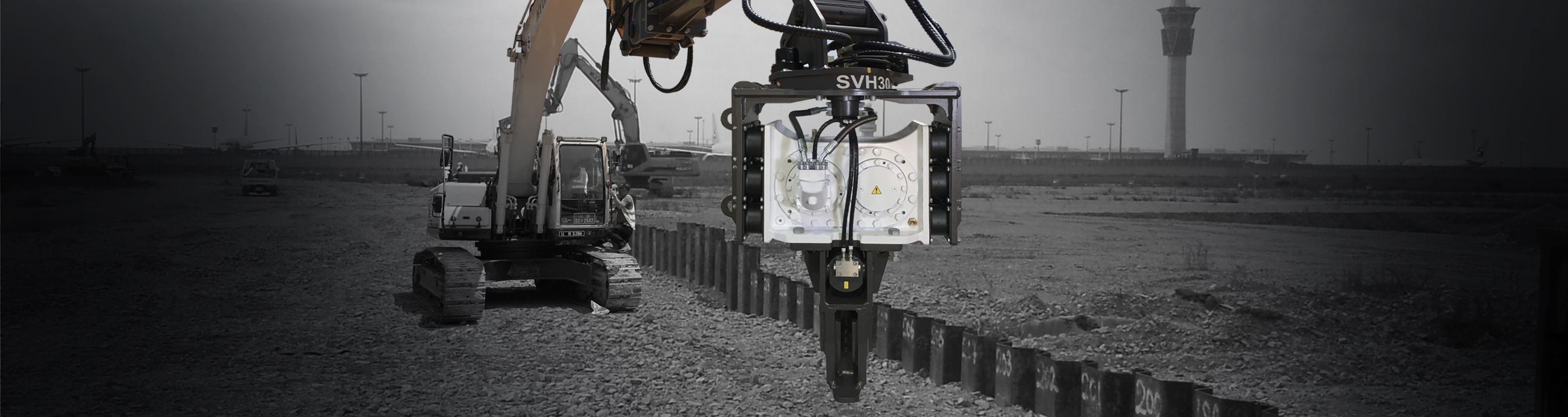 굴삭기에 장착하여 사용하는 바이브로 햄머는 토목및 건설현장, 흙막이 공사에 필요한 H-BEAM, SHEET PILE 압입, 인출에 최적화된 장비입니다.